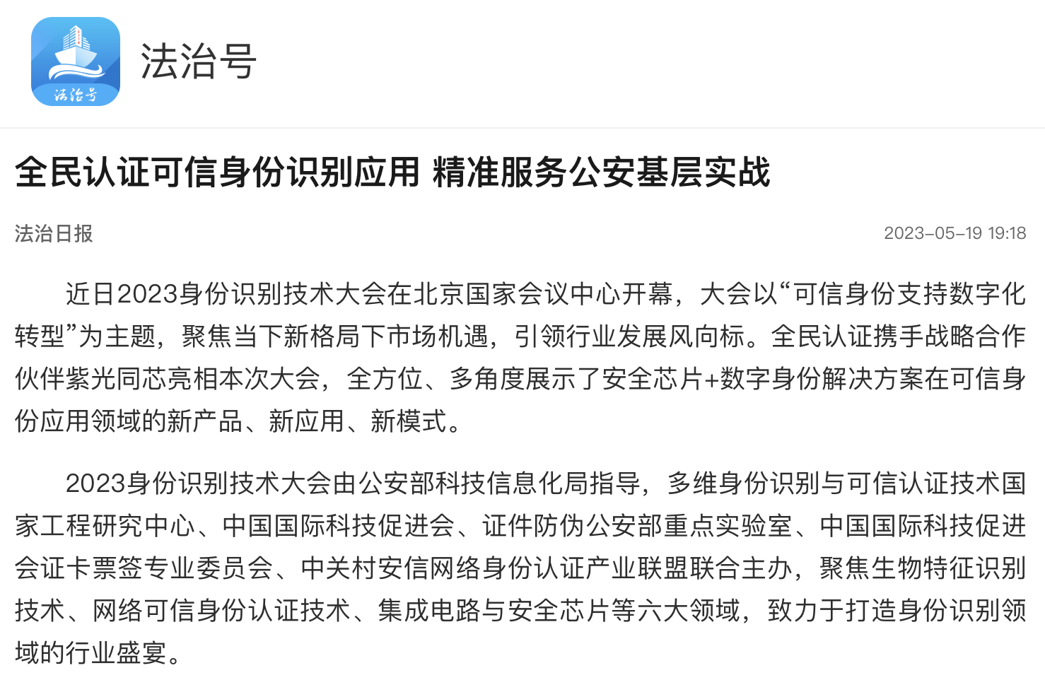 法治日报|全民认证可信身份识别应用 精准服务公安基层实战